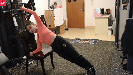 侧身肘触膝是锻炼侧腹的一个很好的动作。如果你的能力还不错,可以侧在地板上;如果能力普通就可以侧在凳子上;如果真的太难了……可以站着把这个动作做了。同样,多次数的训练对于侧腹的训练也是有效的。