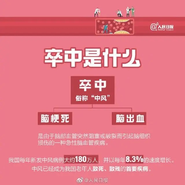 卒中俗称“中风”,数据显示,我国每年新发中风病例大约180万人,中风已成为我国老年人致死致残的首要疾病。